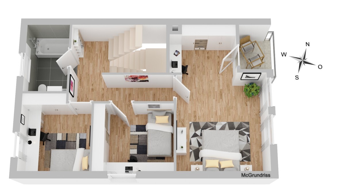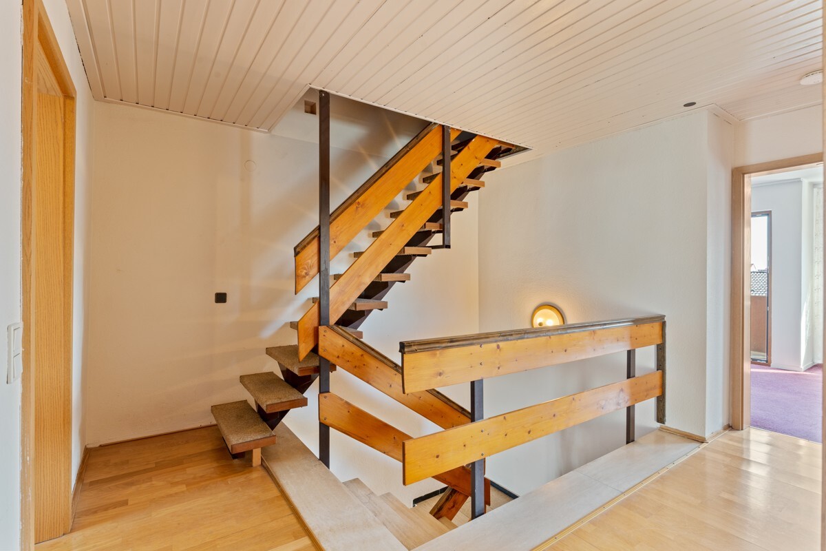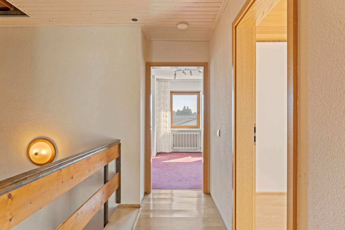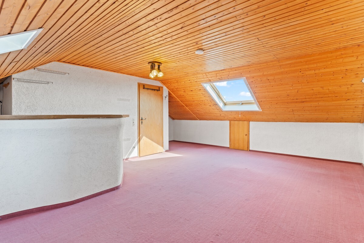 Innenausstattung:Die Raumaufteilung ist durchdacht und bietet viele Möglichkeiten zur individuellen Gestaltung. Im Erdgeschoss befinden sich neben dem großzügigen Wohn- und Essbereich das Gäste-WC sowie die Küche mit Zugang zur überdachten Terrasse. Das Obergeschoss beherbergt drei gut geschnittene Schlafzimmer sowie das Badezimmer mit Fenster. Im ausgebauten Dachgeschoss steht ein weiteres großes Zimmer zur Verfügung – perfekt als Hobbyraum, Büro oder Spielbereich.