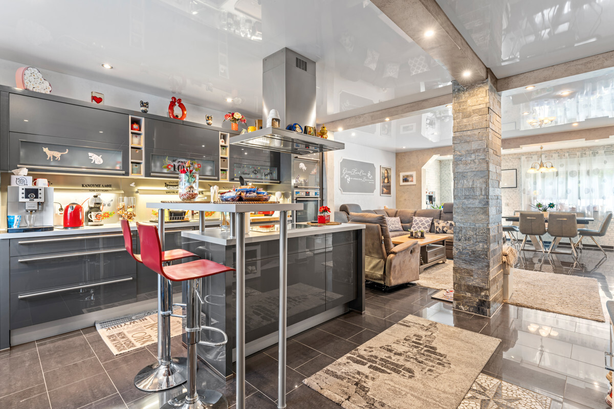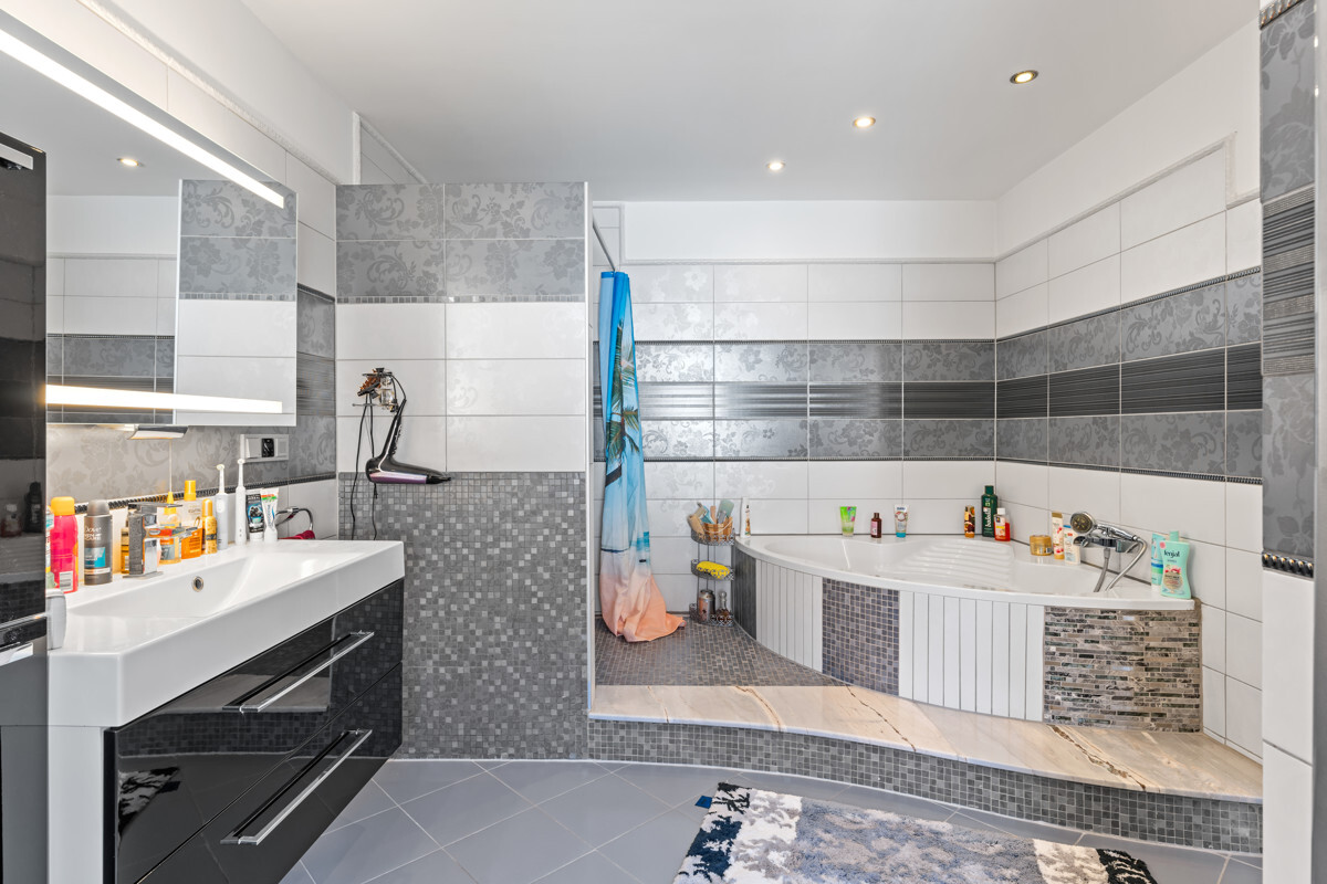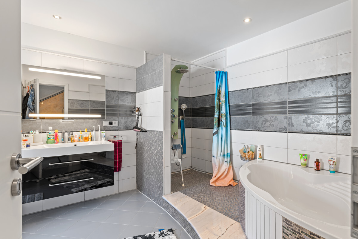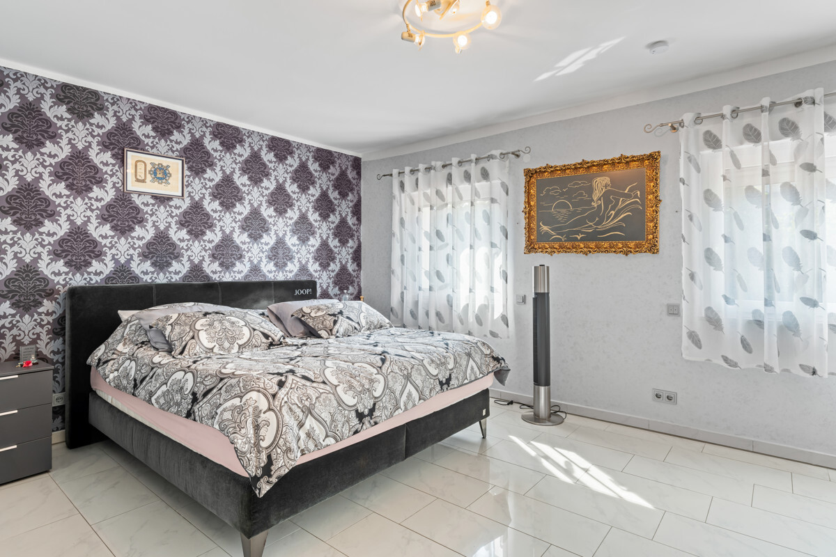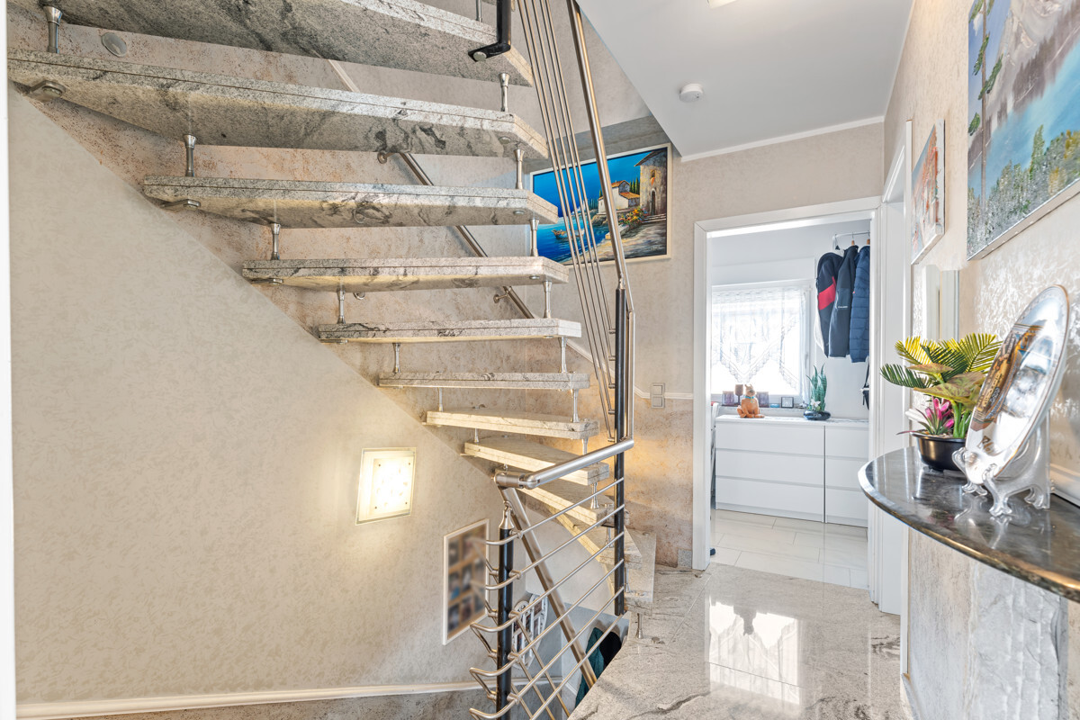 Der Innenausbau wurde von einem italienischen Architekten nach höchsten Anforderungen geplant. Sie finden Spannlackdecken mit LED Beleuchtung, Granitfußböden, Wände und Säulen in Verblendstein, geschmackvolle Bäder und Gäste WC.Der Garten ist pflegeleicht angelegt und gepflastert, sodass Sie kaum lästige Gartenarbeit haben und den Außenbereich voll nutzen können zum Grillen, Feiern oder für die Kinder zum Spielen!