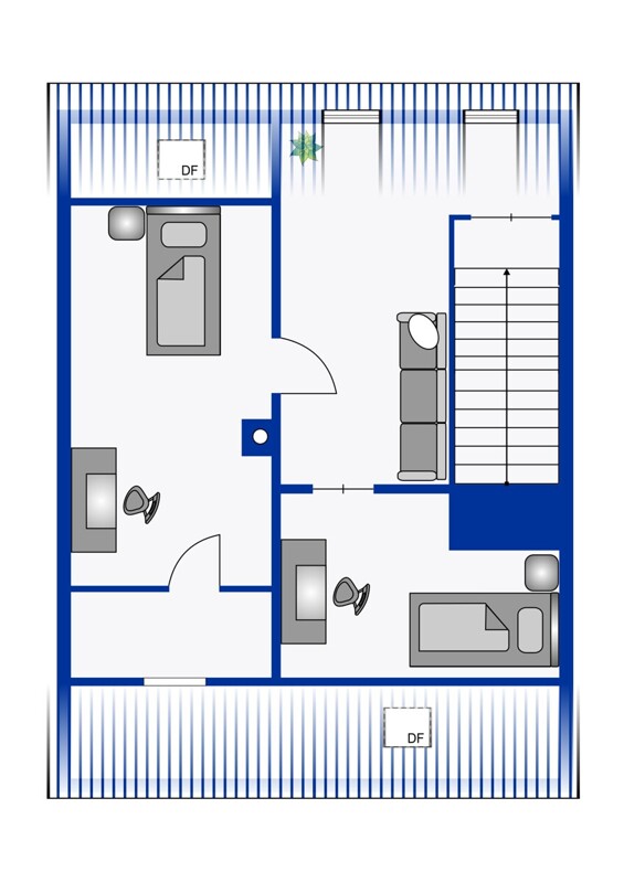 Das Dachgeschoss bietet zusätzlichen Raum, der als weiteres Schlafzimmer oder Büro genutzt werden kann.