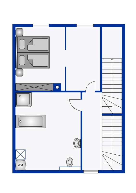 Im Obergeschoss befinden sich zwei geräumige Schlafzimmer, die individuell genutzt werden können.