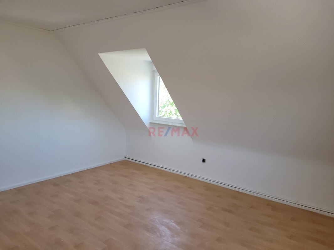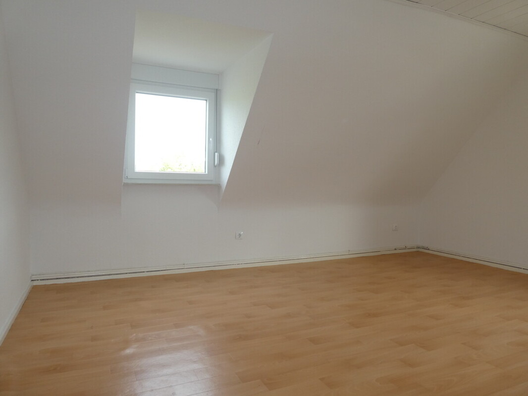 Das Wohnzimmer und das Schlafzimmer sind nahezu gleich groß und bieten trotz der Dachschrägen genügend Stellfläche für Möbel.