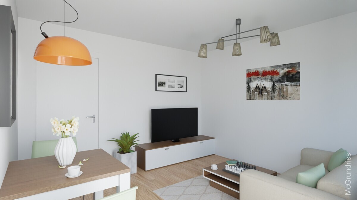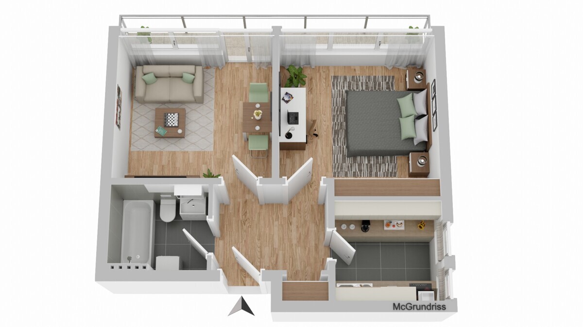 Aus Datenschutzgründen zeigen wir keine Originalfotos der Wohnung. Die dargestellten Illustrationen geben jedoch den realen Schnitt, die Raumaufteilung und das Erscheinungsbild der Wohnung authentisch wieder, sodass Sie sich ein gutes Bild vom tatsächlichen Wohngefühl machen können.