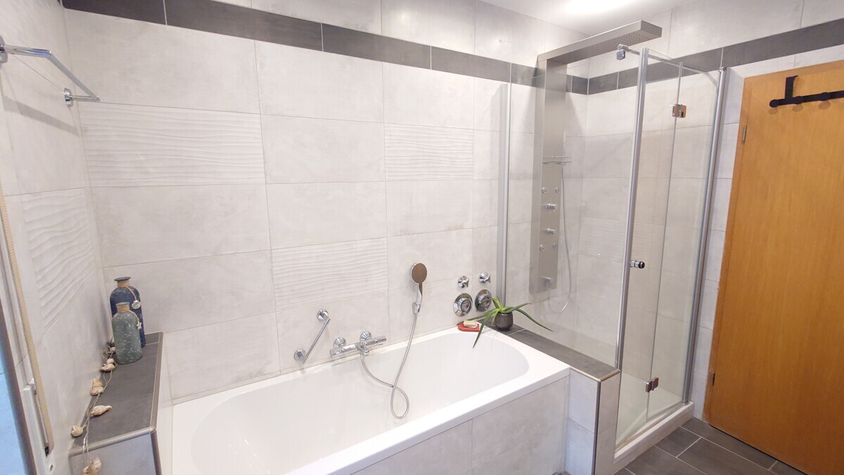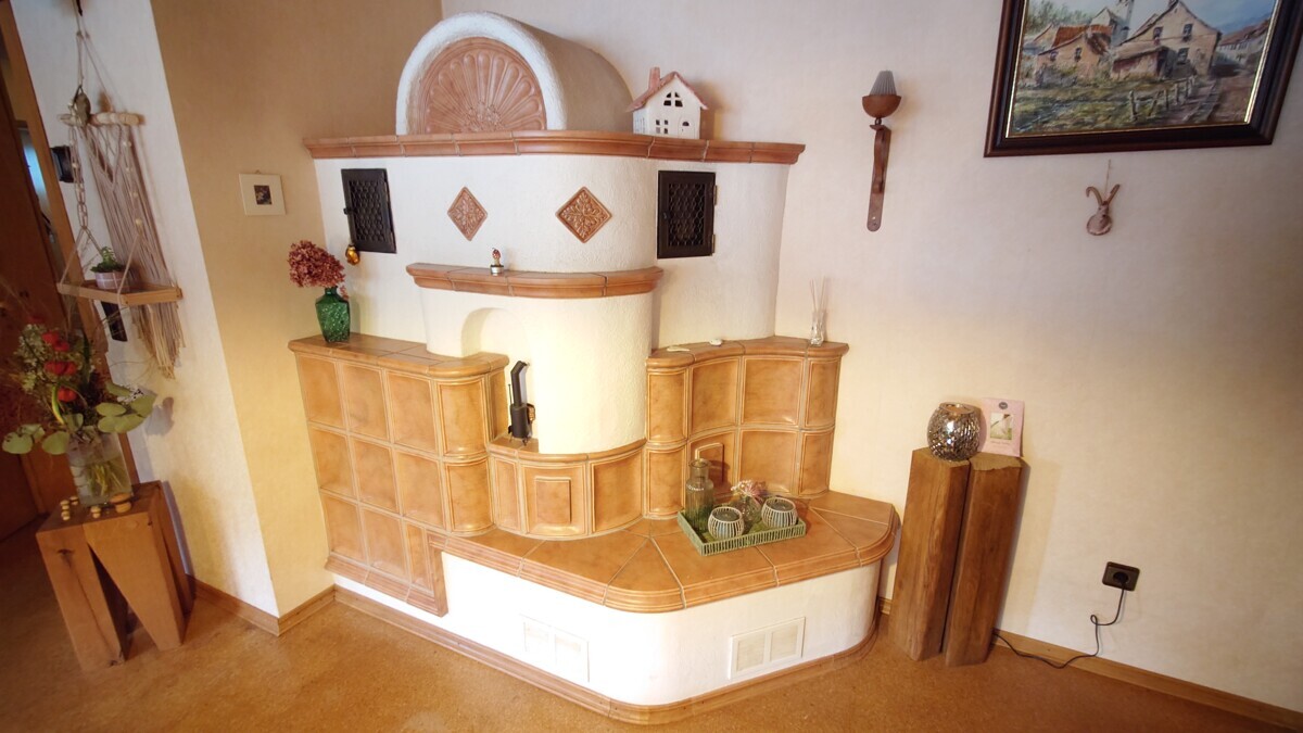 3 moderne Badezimmer und 3 Gäste-WCEinbauküche und Kachelofen im Erdgeschoss