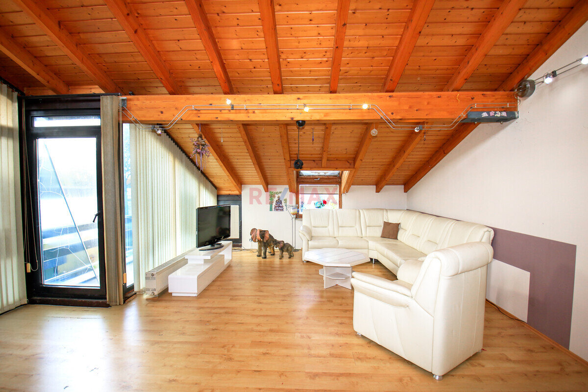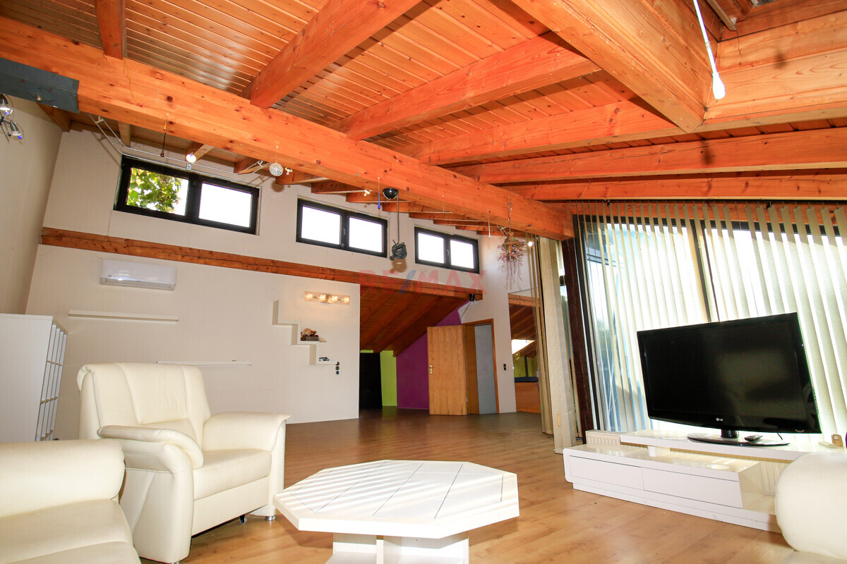Im obersten Geschoss befindet sich das Highlight des Hauses: ein großzügiges Studio mit zwei Zimmern, eigenem Bad, Klimaanlage und Zugang zur Loggia – ideal als Rückzugsort, Atelier oder Wohnbereich für größere Kinder.