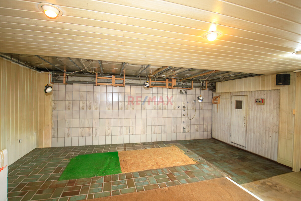 Der ausgebaute Keller bietet zusätzlichen Wohnkomfort mit Büro, Sauna, WC sowie einem Raum mit Vorkehrung für ein Hallenbad.
