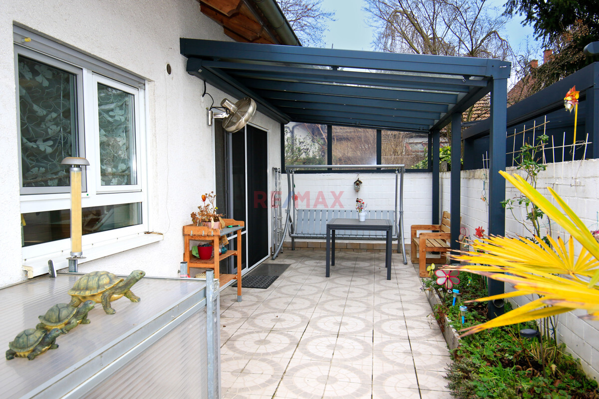 Vom Wohnzimmer gelangen Sie auf die teils überdachte Terrasse.