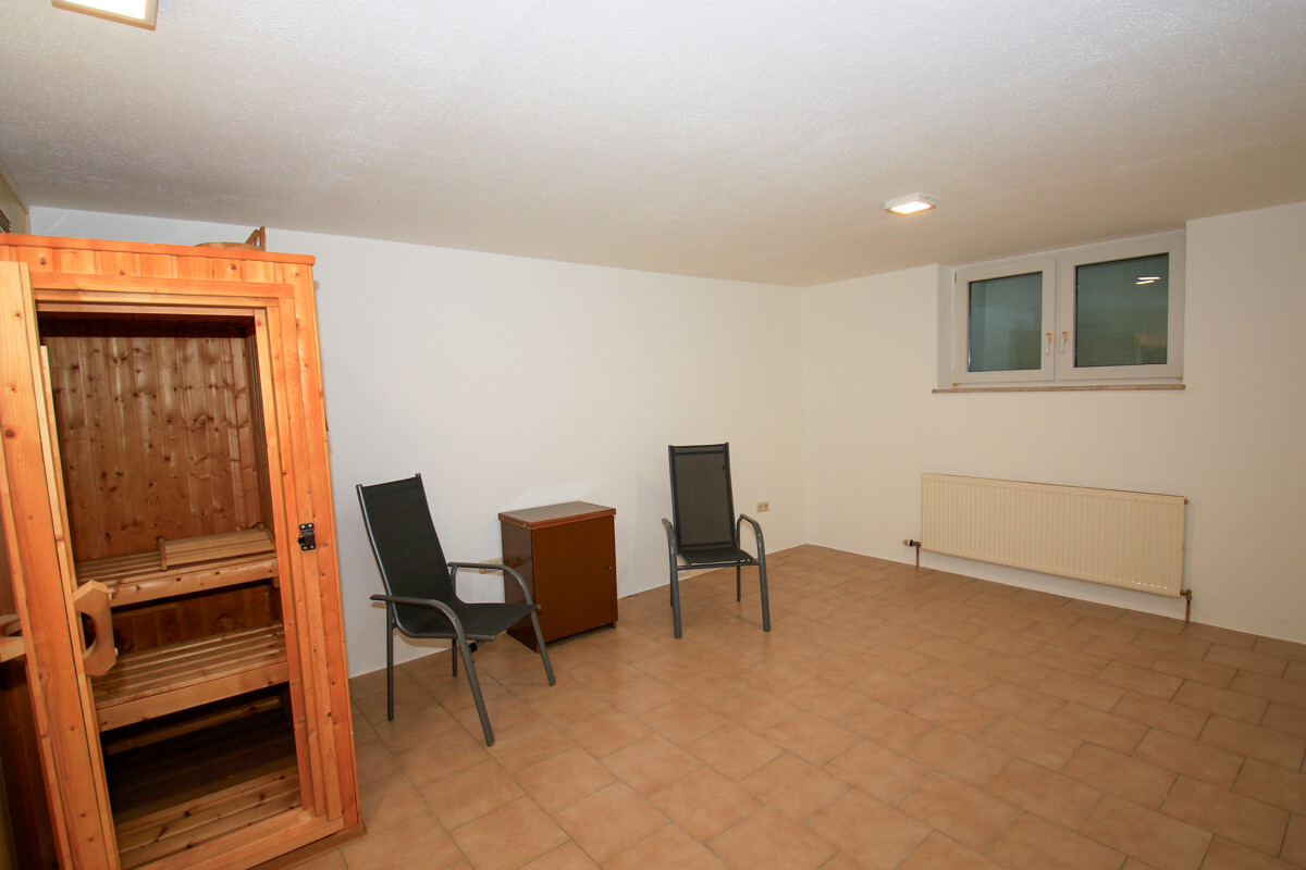 Im Keller ist noch viel Stauraum vorhanden. Hier haben Sie weitere drei Zimmer, eines davon mit Sauna, sowie einen Heizraum und einen Geräteraum.