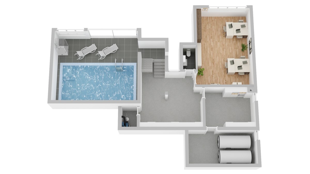 Ein Raum mit vorhandener Vorkehrung für ein Hallenbad – dieses kann auf Wunsch wieder aktiviert werden