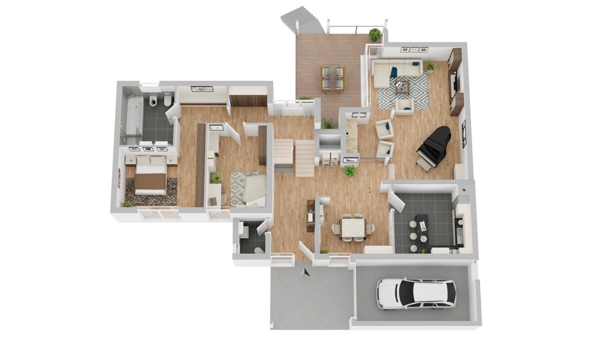 Dieses außergewöhnliche Architektenhaus besticht durch seine durchdachte Split-Level-Bauweise, die für eine offene, zugleich gemütliche Raumwirkung sorgt. Die versetzten Ebenen schaffen eine harmonische Trennung der Lebensbereiche und ermöglichen individuelle Rückzugsorte für die ganze Familie.