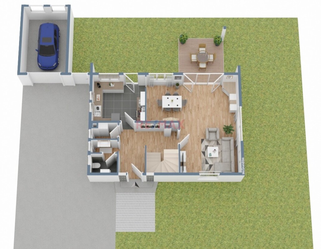 Im Erdgeschoss finden Sie die offene Küche, eine Speisekammer, einen großen Wohn- / Essbereich mit offenem Kamin, eine Garderobe sowie ein Gäste-WC.