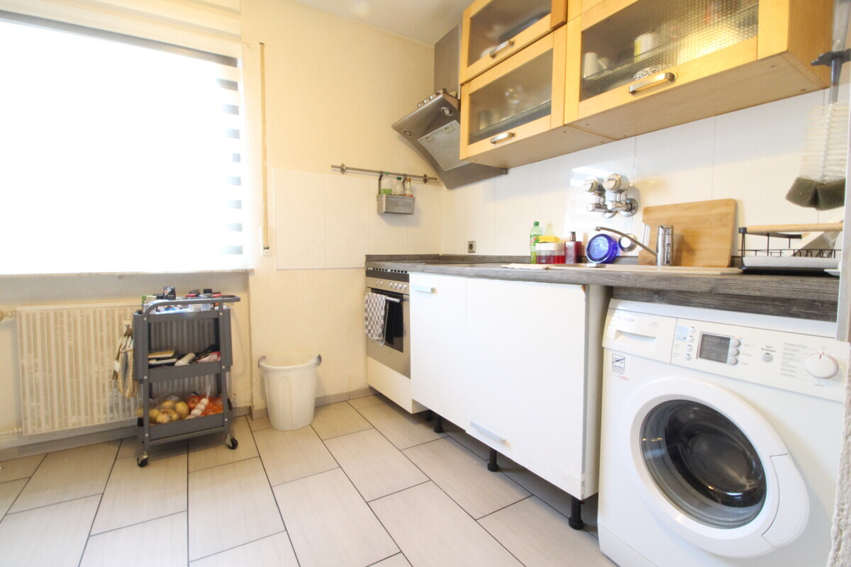 Die Küche ist inklusive. Die Waschmaschine kann dort angeschlossen werden. Die Wohnung ist mit Laminat und Fliesen ausgestattet.